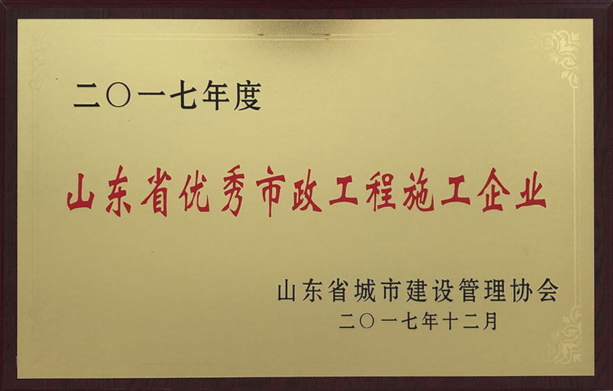 山東省優(yōu) 秀市政工程施工企業(yè)