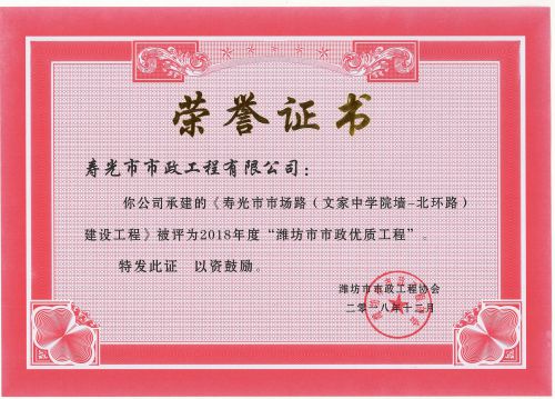 濰坊市市政優(yōu)質(zhì)工程-市場路