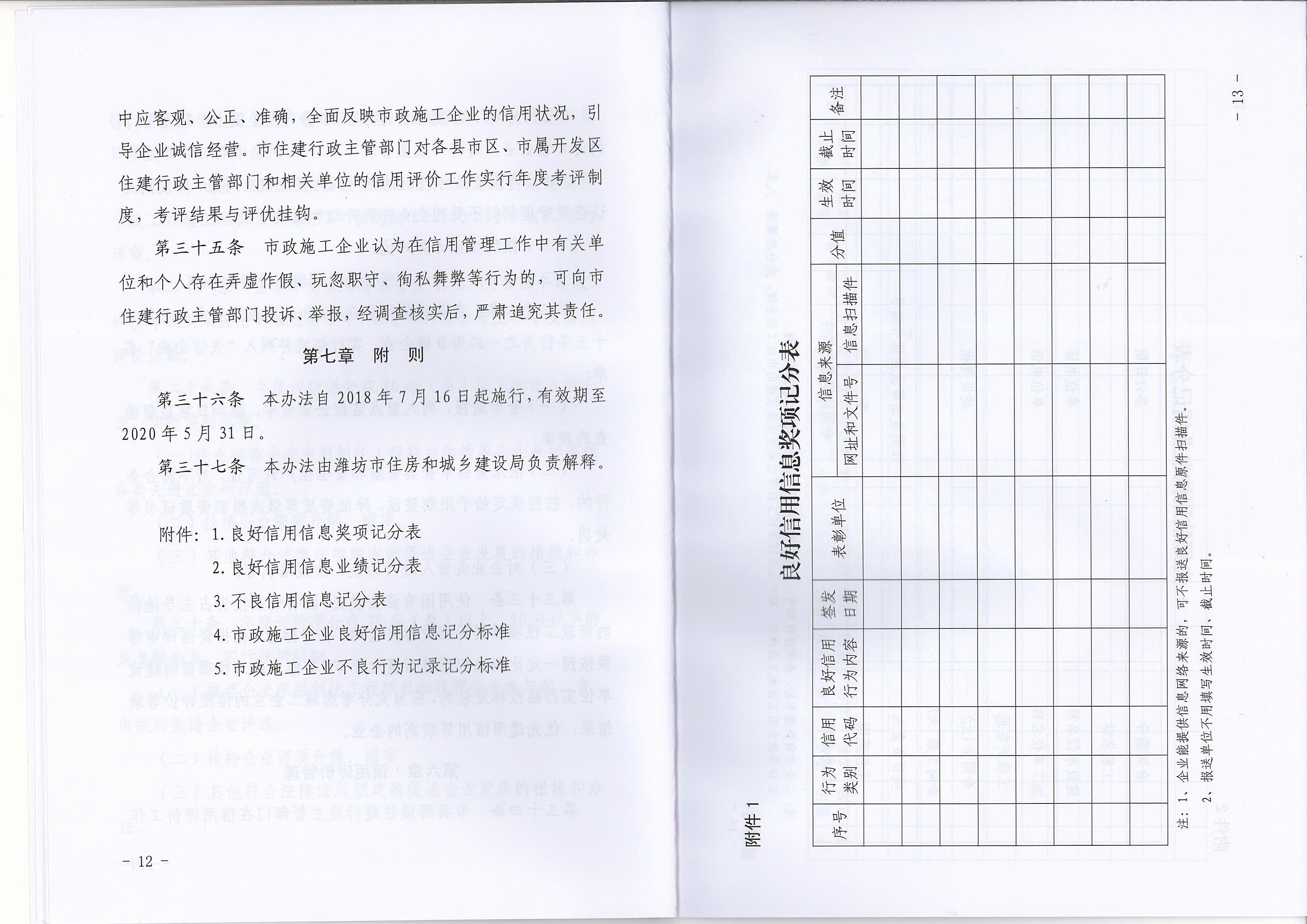 《濰坊市市政施工企業(yè)信用評價管理暫行辦法》下發(fā)
